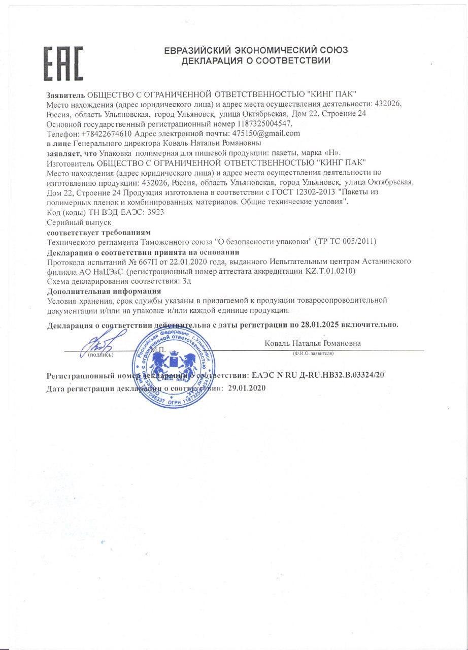 При заказе 30 000 пакетов,